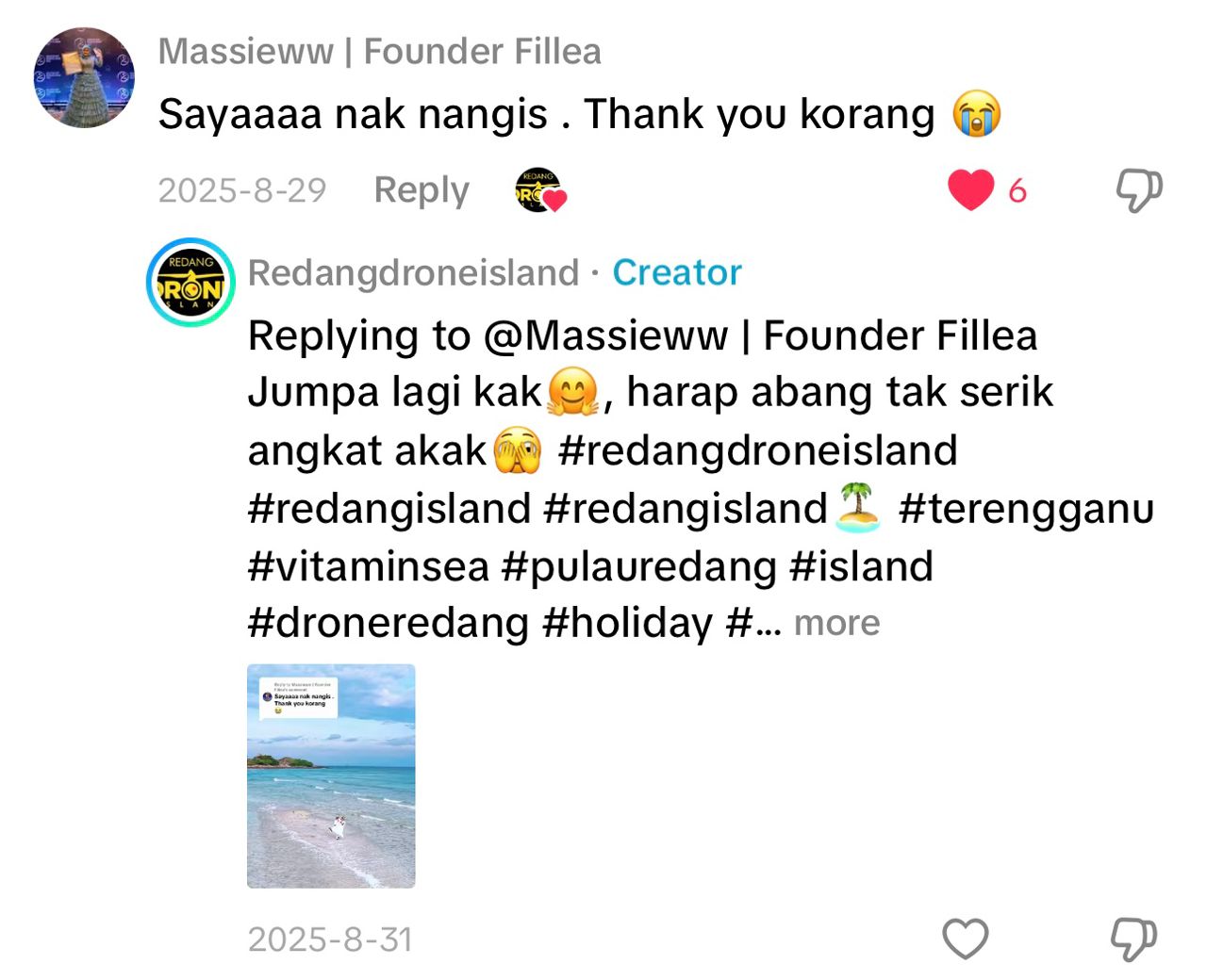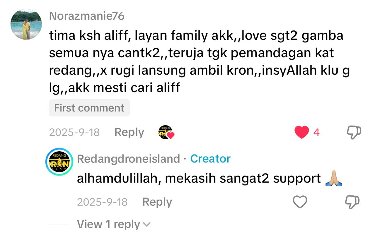 “Highly recommended for anyone visiting Redang. The team knows the best spots and plans the trip very well. Communication was clear and the service was excellent from start to finish.”